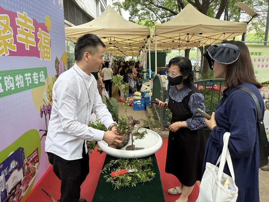 在主题花卉区,阳阳艺术花卉、迎菲花卉等商户带来玫瑰、绣球、ins风龟背竹等绿植,搭配九泰红木、润玉堂的玉器雅件,花香与木香交织,不少居民捧着刚买的花束感慨:“在家门口就能把春天‘搬’回家真好!”