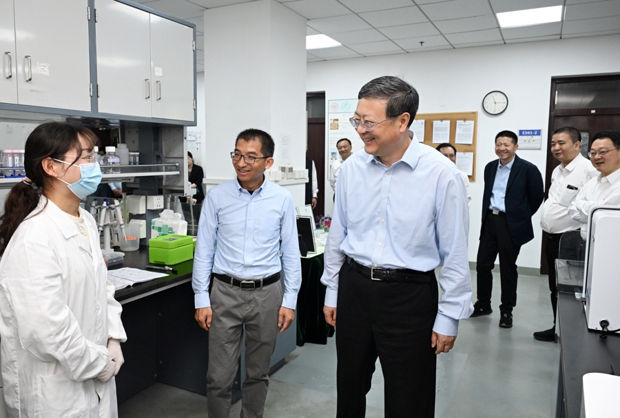 在集成芯片与系统全国重点实验室、信使核糖核酸药物研发中心,陈吉宁察看研究项目进展,就前沿趋势、科研方向、路径比选、成果转化等,与重点学科及重大课题牵头人深入交流,听取大家的想法建议,关切询问还有哪些需要解决的具体问题,勉励大家要沉得下心来、耐得住寂寞,以甘坐“冷板凳”的韧劲、勇闯“无人区”的拼劲,开展高风险、高价值的基础研究,坚持不懈、久久为功,奋力攀登科研高峰。陈吉宁说,要为高校科研人员潜心研究营造更好氛围、提供有力支撑,支持高校加快构建覆盖全生命周期的成果转化体系,加强技术转移机构和专业队伍建设,切实做强技术转移平台,提升成果转化能力,让高校更多科技成果源源不断转化为新质生产力。