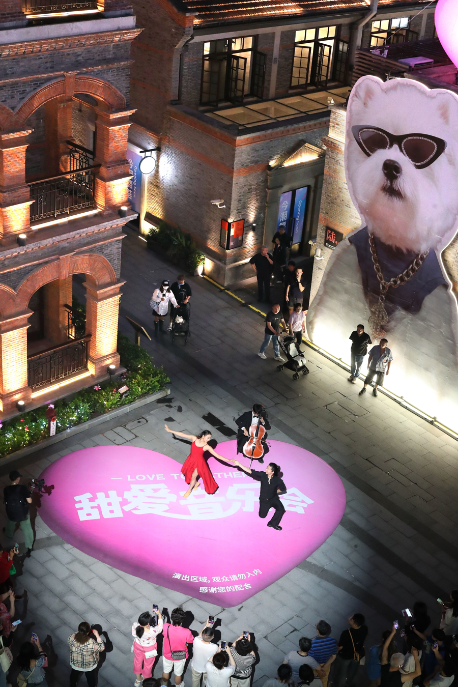 当夜色为上海镀上温柔滤镜,甜爱音律在百年海派弄堂悠扬回响。5月20日晚,沪上海派潮流地标“滨港商业中心今潮8弄”化身现实版“爱乐之城”,一场别具一格的屋顶甜爱音乐会在此上演,正式拉开“海派今潮·星动甜爱季”的帷幕。弄堂屋顶首次化身艺术的舞台,36颗爱心汇聚而成的粉色心海间,10位青年艺术家共同演绎爱的故事与传奇。屋顶上、长廊间、屋檐下,一幕幕电影般的场景,点亮独属于上海的心动时刻。
