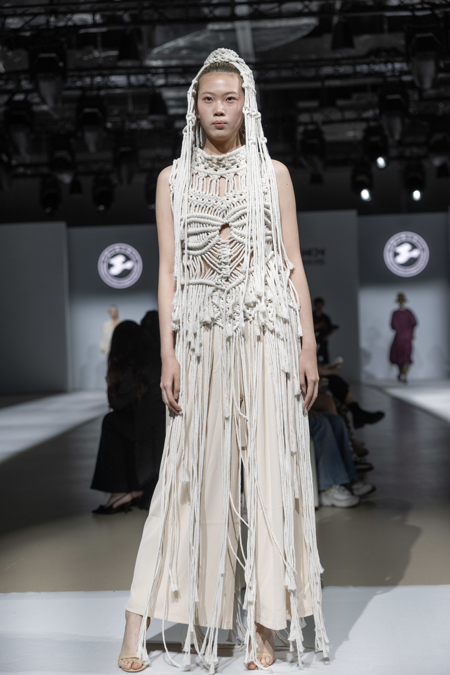 作品秀主题为“意识褶皱 - Consciousness Pleats”,旨在通过服装与服饰设计,探索意识和思维的复杂与多变,将抽象的思维与情感用视觉方式呈现于作品之中。
