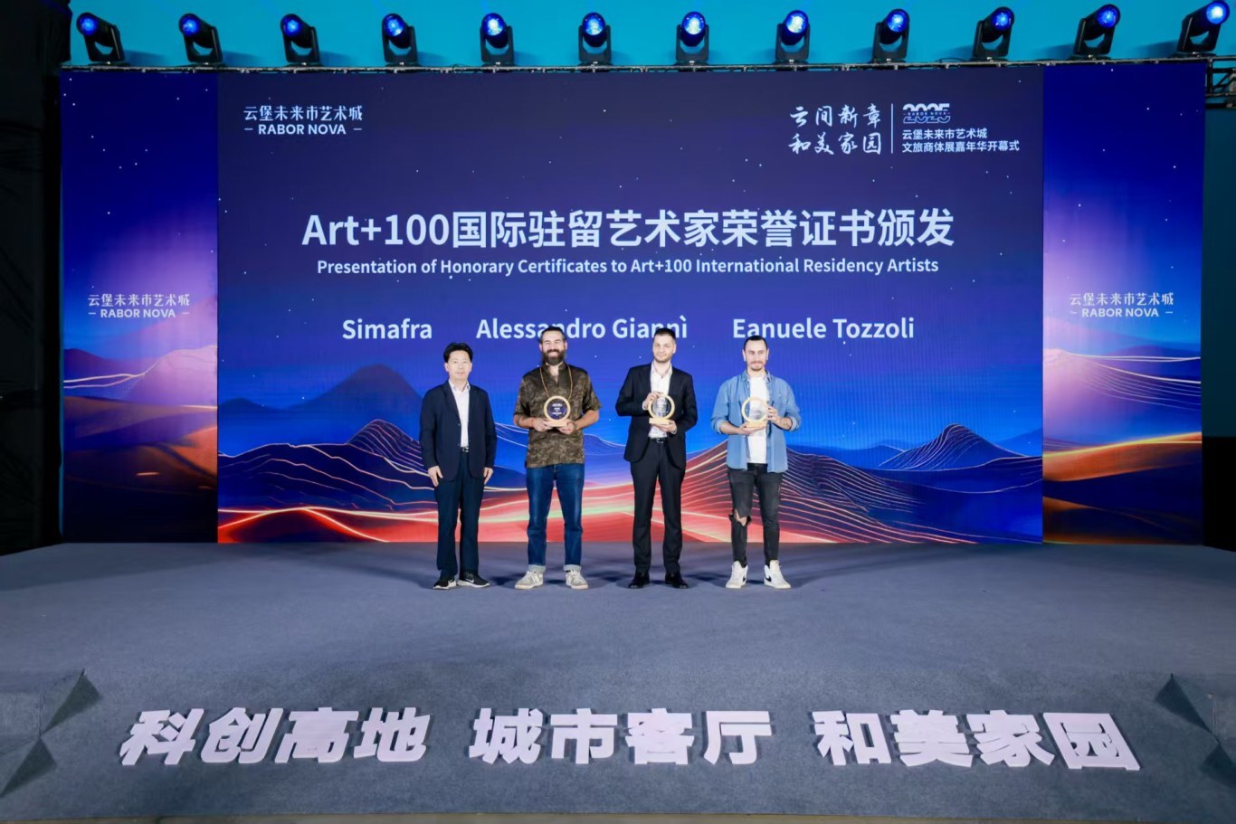 今年恰逢中意建交55周年,ART+100 国际青年艺术家驻留计划迎来多位世界各国的艺术家入驻云堡未来市艺术城。在活动现场,上海艺术百代美术馆发布年度国际驻留成果,并为意大利驻留艺术家颁发证书。驻留期间,艺术家们深度联动松江文旅地标开展创作,以艺术为纽带,为中意文化交流与友好往来注入新活力。