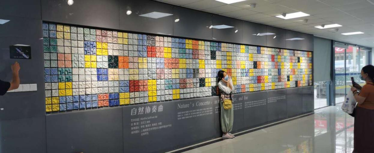 图7 复旦附属儿科医院药房永久收藏的十米陶艺墙师生共创作品