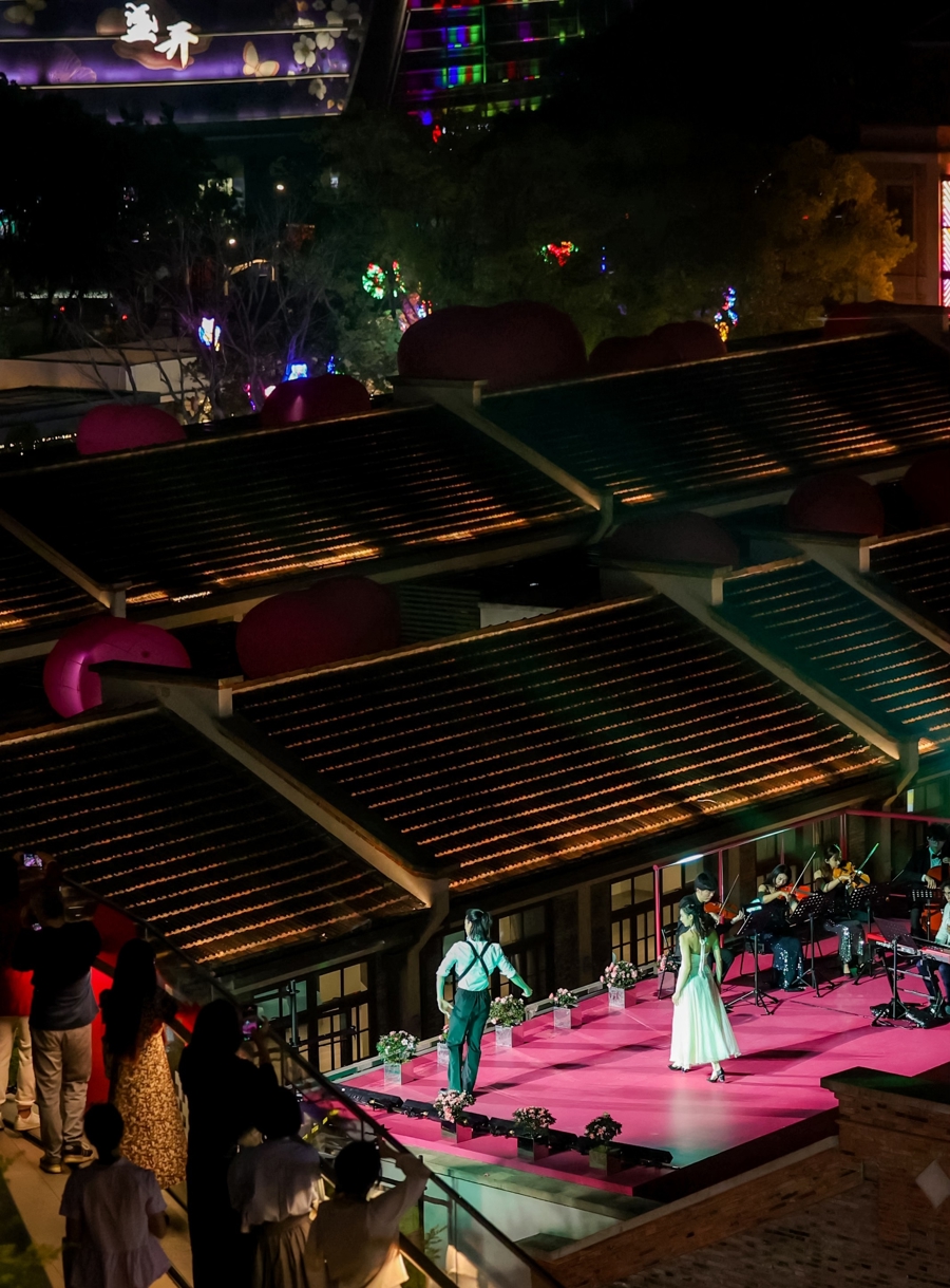 夜色为上海镀上温柔滤镜,5月20日晚,今潮8弄化身现实版“爱乐之城”,弄堂屋顶首次化身艺术的舞台,10位青年艺术家共同演绎爱的故事与传奇——屋顶上、长廊间、屋檐下,一幕幕电影般的场景,演绎独属于上海的浪漫。
