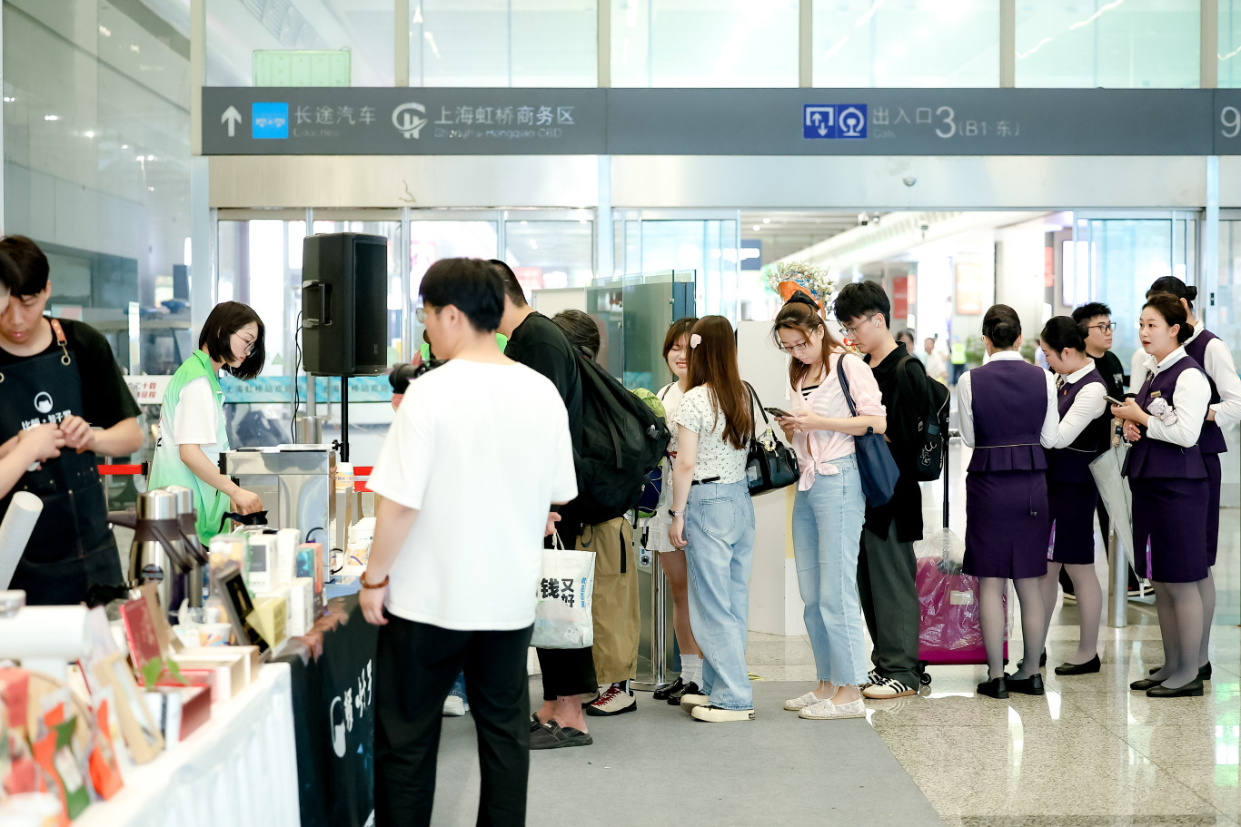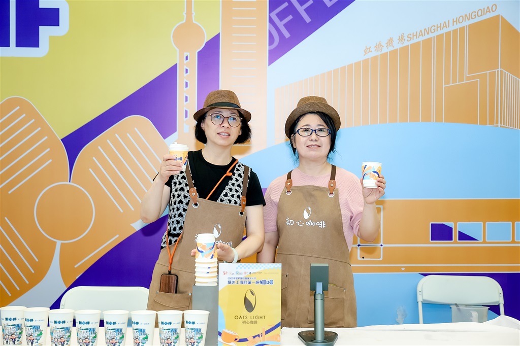 闵行区新虹街道联合虹桥国际机场、铁路上海站虹桥车间、地产虹桥联合数家辖区特色咖啡品牌,共同打造了两个“咖啡赠饮区”,让更多旅客收到印有“上海欢迎您”专属杯套的“第一杯咖啡”。