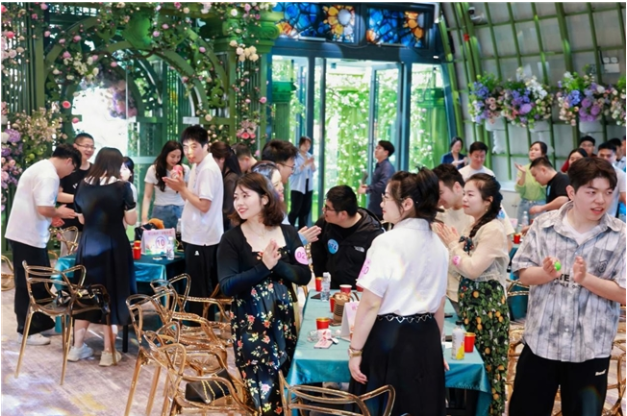 活动现场精心设置多个互动环节,通过“初遇时刻”破冰游戏、“缘分拼图”团队任务、“茶歇畅聊”自由交流等轻松形式,打破行业界限,拉近青年距离。在协作挑战中,青年们组队完成任务,笑声与掌声交织;自由交流时段,大家分享工作趣事、生活爱好,从陌生到熟悉,逐渐敞开心扉。来自中建八局一公司的青年代表王瑞坦言:“习惯了平日‘两点一线’的工作,这次活动让我遇见不同领域的优秀伙伴,对合肥的归属感更强了。”心动表白环节,十余位男性青年勇敢示爱,为心动女嘉宾送上告白与花束,成功牵手;更多数人选择互留联系方式,他们将在生活中继续沟通交流。