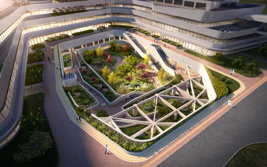 作为临港新片区高品质国际化研究型医疗中心,浦东医院临港院区将重点发展妇儿中心、肿瘤、心脑血管疾病、五官科和康复医学等学科方向,致力于打造一片多层次且生机盎然的“疗愈绿洲”。