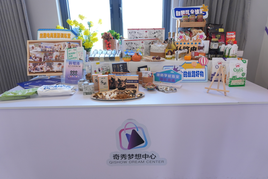 步入项目室内,浦东新区对口帮扶的云南特产与万祥本地特色农产品琳琅满目地陈列在桌案上。这些产品通过直播带货的方式,打开了市场、拓宽了销路,成为助力乡村振兴的重要窗口。项目还设有校企实习实训基地、万祥镇青年中心、“丝路电商”合作研修中心,曾举办多种活动,并荣获多项荣誉,成为培育“数字新农人”的摇篮。