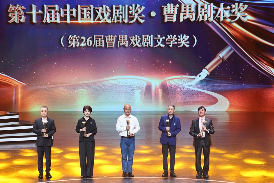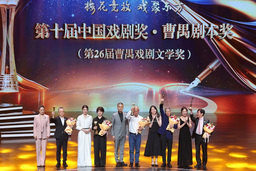 颁奖晚会上,第26届曹禺戏剧文学奖5部获奖剧作闽剧《画网巾先生》(编剧:戴先良)、越剧《钱塘里》(编剧:谢丽泓)、话剧《屈原》(编剧:黄维若)、京剧《张謇》(编剧:龚孝雄)、话剧《捉迷藏》(编剧:李宇樑)获得奖杯。
