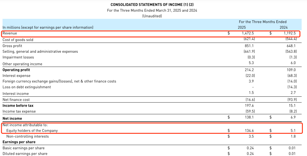 5月20日美股盘前,运动和户外品牌集团亚玛芬体育(NYSE:AS)发布2025年第一季度财务业绩,第一季度销售额、调整后利润率及每股收益(EPS)等数据均远超预期。