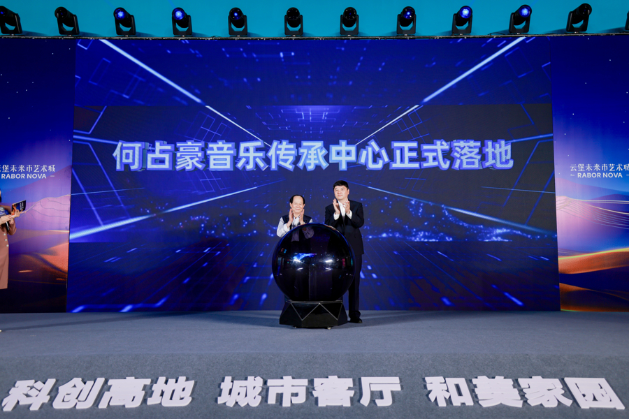 活动现场,两位老艺术家的现身引发了雷鸣般的掌声——88岁的当代新海派美术领军人物陈家泠带来“沪派江南·泠观山河”美丽家园新海派艺术创作计划松江篇,陈家泠说:“松江是一个很美的地方,天时地利人和,我很期待在这里创作,用画笔描绘出美丽乡村、美丽家园。”92岁的作曲家、小提琴协奏曲《梁祝》主创何占豪也正式入驻云堡未来市艺术城,成立何占豪音乐艺术传承中心,中心将通过开设大师班、创作工坊,以及每月一场的沉浸式《梁祝》音乐会驻场演出,推动经典民乐传承创新。