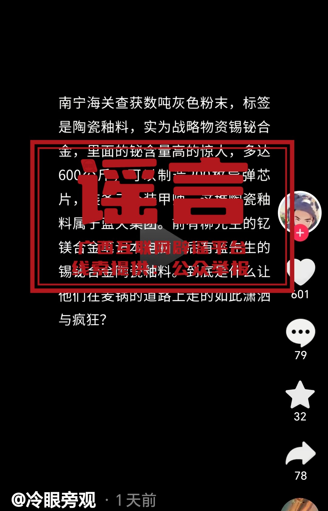 网传南宁海关查获“25吨锑锭”“30吨灰色陶瓷釉料粉末”为不实信息