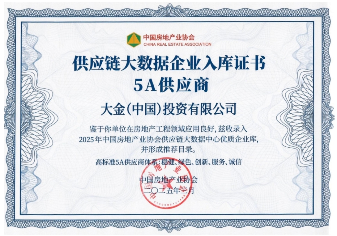 据悉,此次测评成果将收录入中国房地产业协会供应链大数据中心优质企业库。大金凭借在稳健、绿色、创新、服务、诚信五大层面的出色表现,成功入选高标准“5A供应商”。