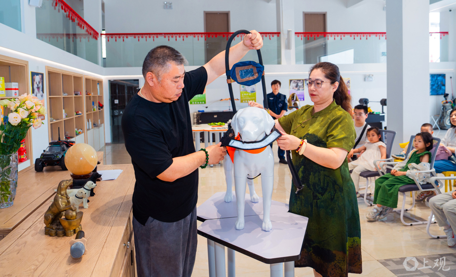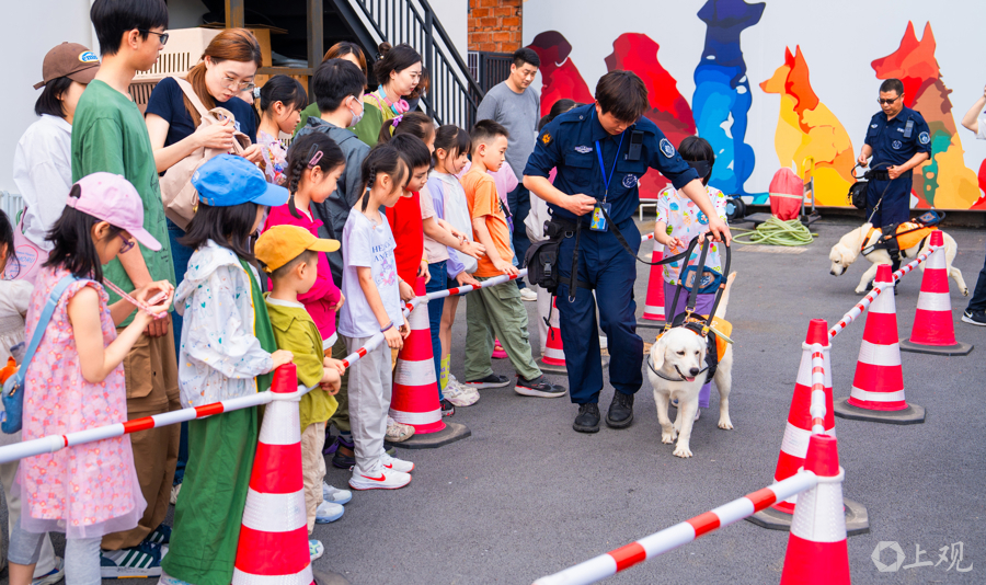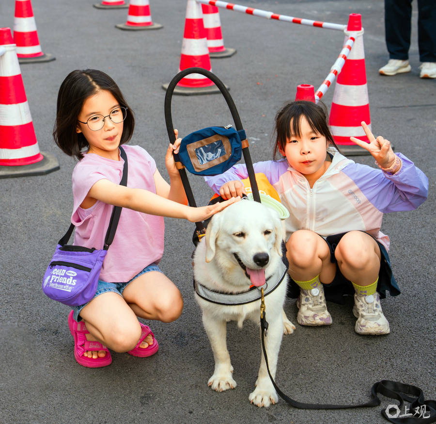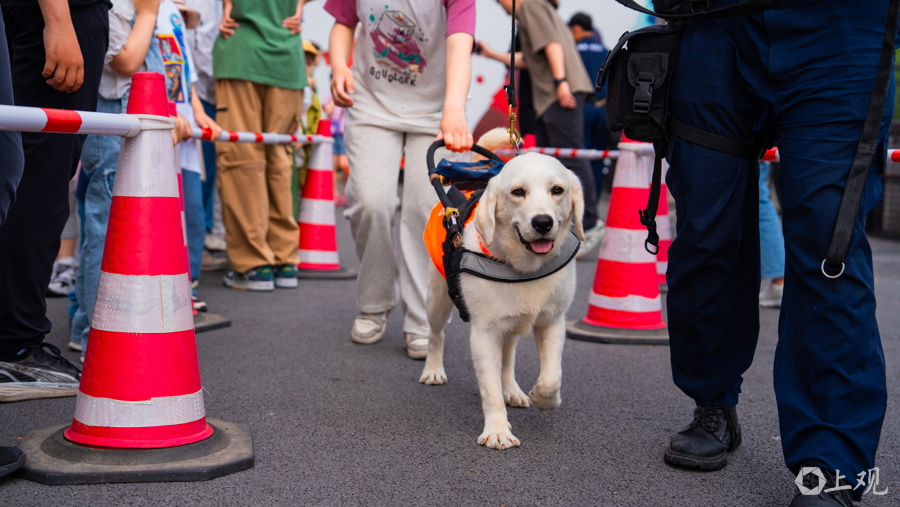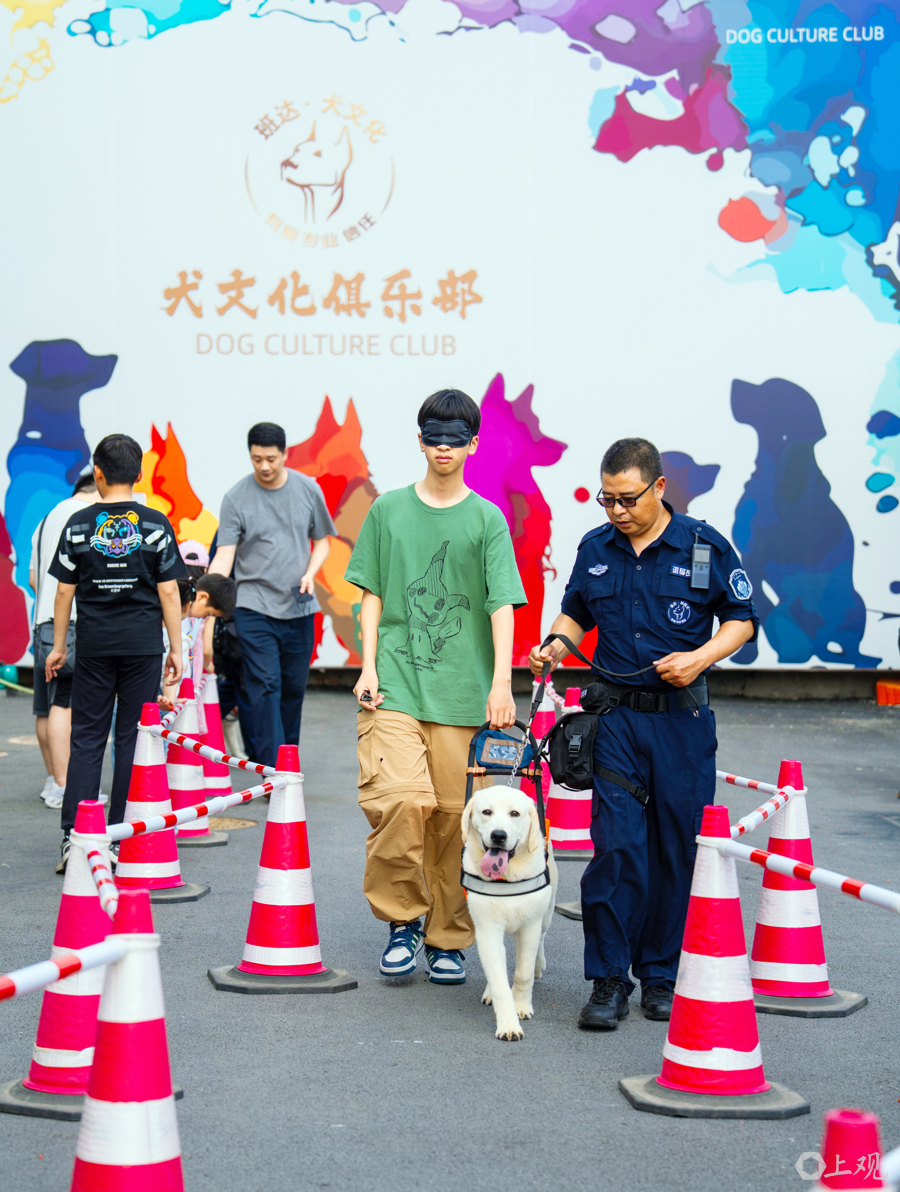 日前,位于松江九亭的上海班达导盲犬基地,迎来近百名市民近距离与导盲犬互动,体验导盲犬带人过路障,增强人们对残障群体关爱意识。