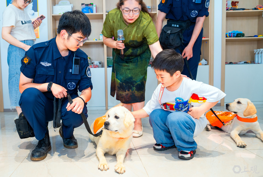 孩子们近距离接近导盲犬。