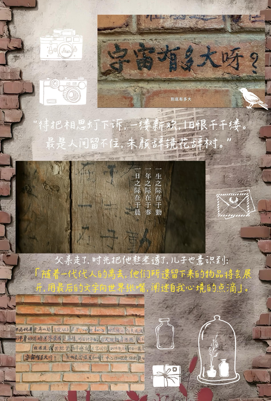 “宇宙有多大呀?”“每年杏花落打药一次,立秋后再打一次毛虫药。”在山西代县,张福青老人曾有一座“砖瓦图书馆”,他把对世间的心事都写在了院子的砖瓦上,故事曾被小红书摄影师“蔡山海”偶然发现,单篇帖子就有10.6万网友点赞,众多网友纷纷转发、二创。今年,张福青的故事被小红书打造成了“线上家史博物馆”,张福青的儿女因此更加了解父亲,与此同时,更多儿女也开始主动探寻自己父辈的“宇宙”。