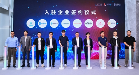 仪式上,浦东新区科经委副主任徐敏栩,陆家嘴集团党委书记、董事长徐而进为“陆创AI加速器”共同揭牌。陆家嘴股份相关负责人与8家入驻企业代表共同上台举行了签约仪式。