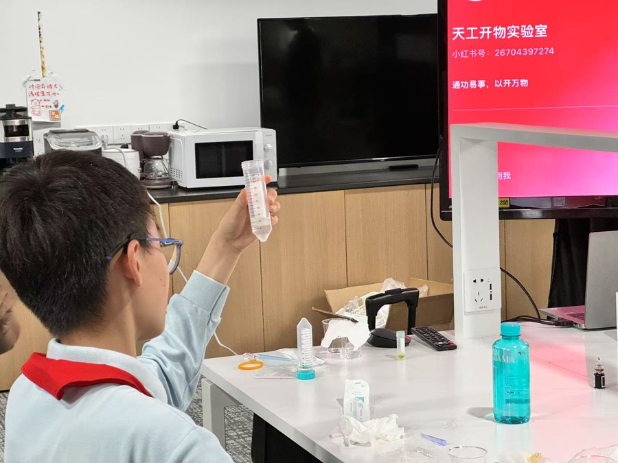 现场,“未来科学家”DNA创意探索赛吸引了20余名初中生参与。街道社区学校负责人侯颖霞介绍,今年寒假结束后,学校便与天工开物创新孵化中心对接,研究合适的合作内容。综合考虑孩子们的理解能力、操作时长、实验安全性等,最终在3月底确定了制作香蕉DNA玻璃项链的活动主题。经过园区企业、合成生物企业蓝晶微生物研究员的多次调试,设计了今天的比赛内容。