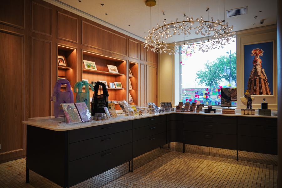 外滩18号1楼商铺华丽“变身”为限时文创快闪体验店,精心设计的创意沿街橱窗营造出“西”式主题风情“街角文化惊喜”,让商业空间成为艺术季的又一展示窗口,建筑成为可阅读的艺术载体。馆方推出百余款文创周边及限定印章,让观众用独特的方式留存下自己别样的观展记忆。例如为高迪双展特别设计的百余款系列文创产品,从欧根纱包复刻巴特罗之家的梦幻流线,到马赛克风发夹提取卡尔维特扶手椅的曲线美学,再到以米拉之家和巴特罗之家为设计灵感的笔记本,设计团队通过创意设计打破艺术与生活的边界,让观众得以把高迪天马行空的建筑哲思带回家中珍藏。