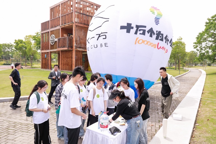 活动以“科幻+科普”为核心,打造了一场沉浸式的科学盛宴。100 名青少年沿着1公里的环线徒步打卡,途经“十万个为什么问号机”“十万个时空折叠舱”“新青年驿站”“穿越光栅站”4个特色打卡点。在“自动问号机”前抽取的“泡泡问号签”,不仅有科学知识问答,更包含“十万个为什么”尚未解答的谜题,让青少年在探索中感受科学的未知魅力,实现“场景化学习+游戏化探索”的创新体验。