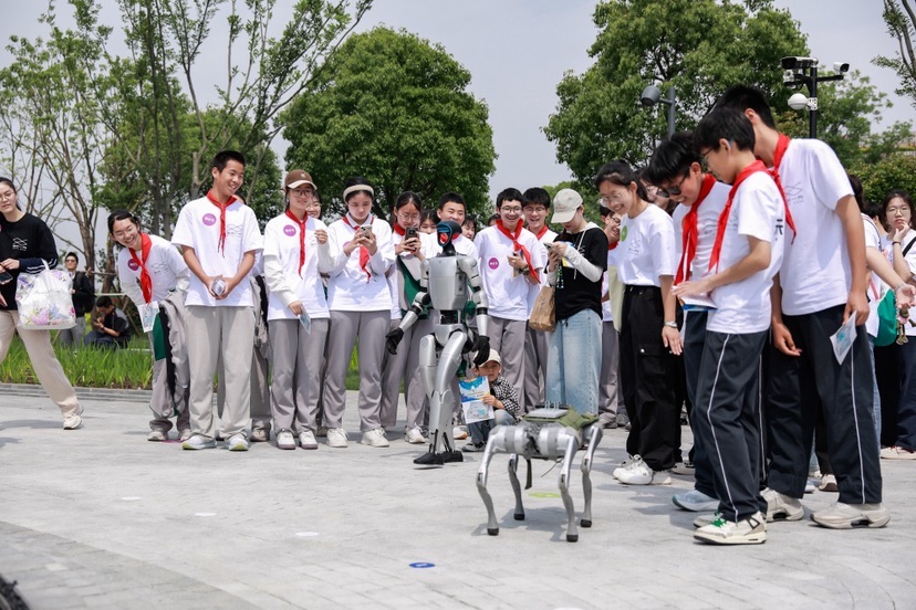 鲸鱼科技机器人、宇树 Go2 机器狗等前沿科技元素的加入,让活动充满科技感。机器人与青少年亲密互动,无人车变身移动补给站,让孩子们近距离感受科技发展的魅力,进一步激发他们对科技探索的热情。