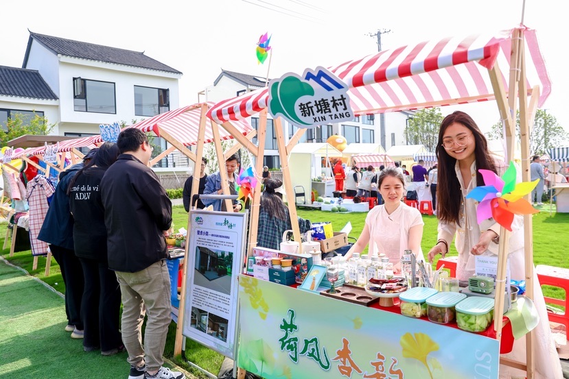 特色乡村市集与非遗展示区人头攒动,柘林镇本地优质地产农产品令人目不暇接。藏红花米、彩色番茄、南瓜、西甜瓜等琳琅满目的农产品,展现着乡村丰收的喜悦;方糕体验、糖画、泥人等传统手工艺摊位前,欢声笑语不断,瞬间勾起人们的童年回忆;非遗滚灯、铜刻书法、风筝漆扇等非遗摊位更是围满了好奇的群众,大家纷纷驻足观赏,感受传统文化的深厚底蕴。