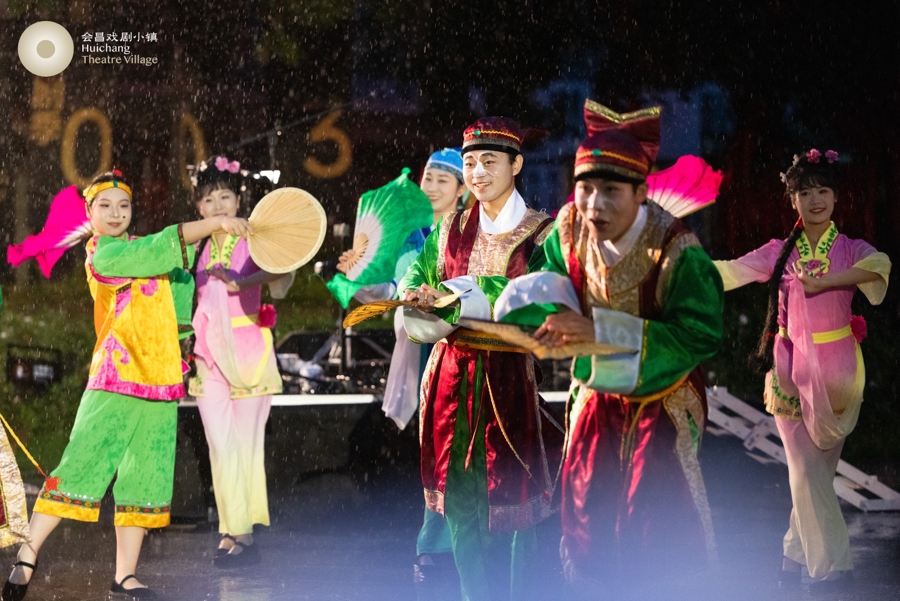 5月23日,会昌戏剧小镇戏剧发起人赖声川、丁乃竺,戏剧导演罗伯特·威尔逊,演员谢娜、海清、屈中恒,服装设计师黄薇,摄影艺术家杜可风在雨幕中见证会昌戏剧季003正式启幕。