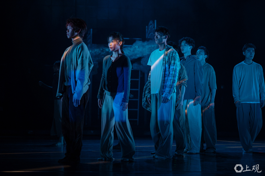 剧中打破传统舞剧的主演与群舞界限,同一角色由多名舞者交替诠释,以“情感线索”串联碎片化叙事。这种创新源自师生共创的独特模式:董杰与刘赫两位导师搭建框架,13名学生既是编导又是舞者,每个人都在作品中烙下独特印记。