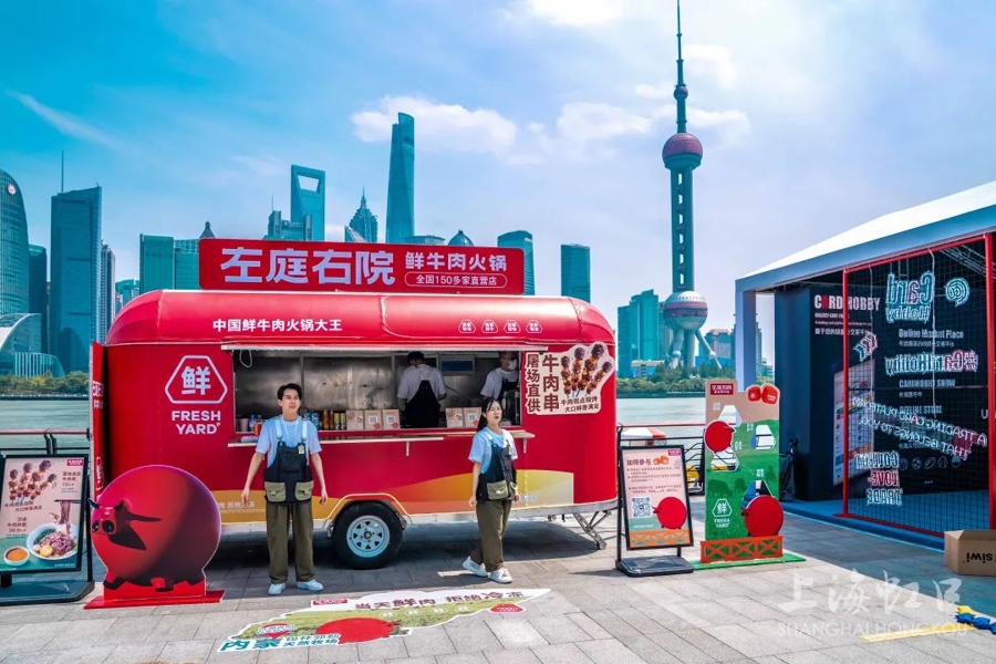餐饮区呈现鲜明的赛博朋克风格,沪上阿姨推出的奶茶饮品与iFood赛博炸鸡桶成为爆款。左庭右院餐车前飘香四溢,营造滨江旁的独特用餐体验。
