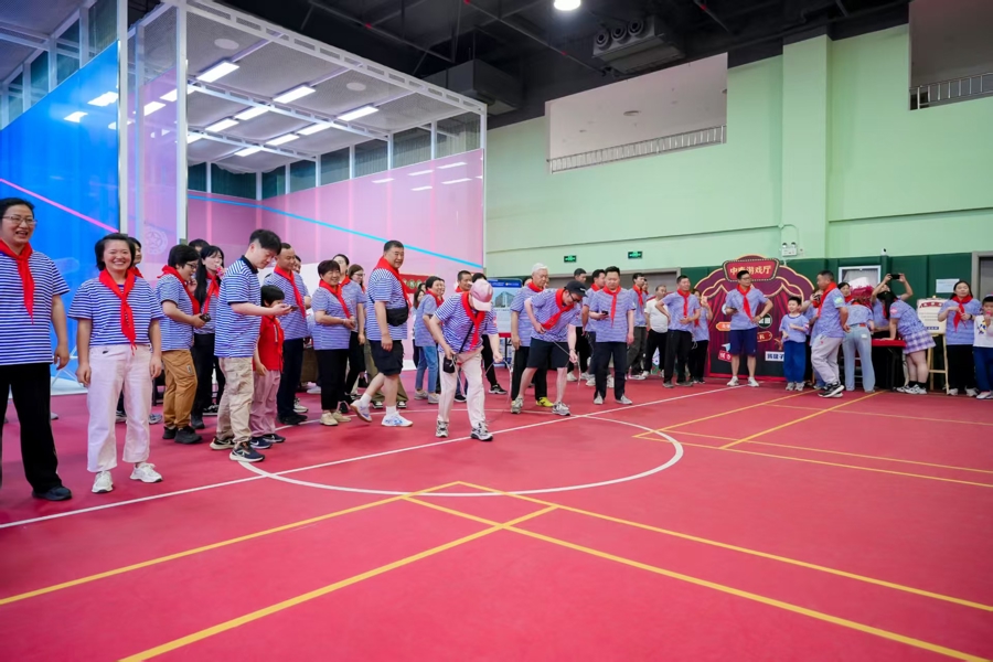 滚铁圈,骑“毛毛虫”……一群成年人换上蓝白相间的海魂衫,戴上红领巾,玩得忘了年龄。5月24日,“四区齐联动,时光游园会”暨七宝镇第十届运动会主题活动在七宝镇市民健身中心举行。