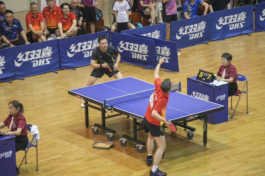 比赛现场,选手们全神贯注,赛事高潮迭起。胶皮摩擦球面的“唰唰”声与鞋底摩擦地板的“吱吱”声交织;从直板快攻到横拍弧圈,从正胶快攻到反胶旋转,精准的扣杀和巧妙的防守赢得了现场观众的阵阵喝彩。各队选手均展现出高超的竞技水平与出色的团队协作精神,以银球的优美弧线绘就了一幅长三角体育文化的生动画卷。