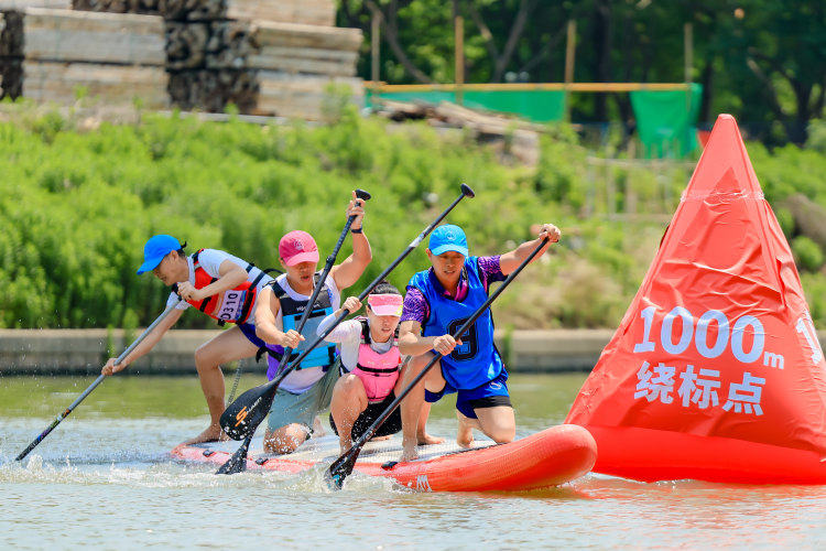 烈日炎炎,但并未阻挡下午场桨板赛事的高人气。200米障碍挑战赛、3公里拉力赛..……选手们在水道上既有爆发力比拼,也有耐力较量。尤其是女子组比赛的后半程,随着终点临近,岸边观赛区的鼓劲声与掌声越来越响,选手们逐渐提升划桨频率依次冲线,为这场竞技性与观赏性的水上盛会画上句点。”