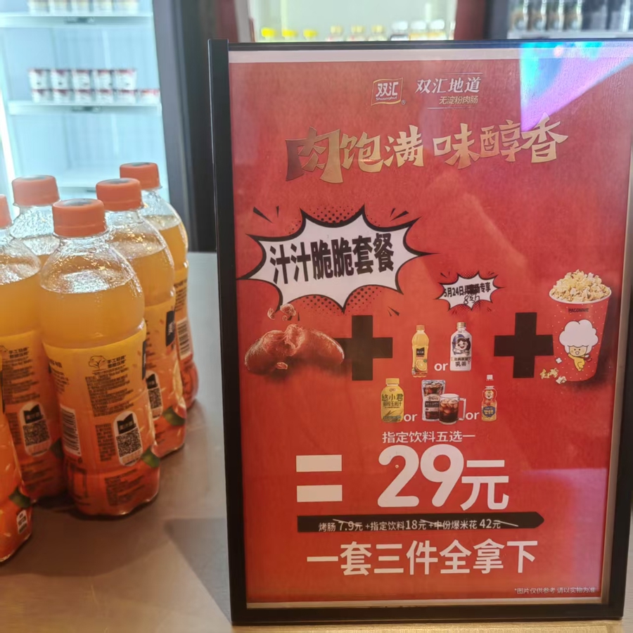 检票口附近,另一位工作人员向观众们吆喝“觉醒年代”套餐,爆米花、烤肠、饮料总价29元。“这是只有看‘觉醒年代’才有的吗?我看其他电影可以买吗?”对此问题,工作人员悄声说,“都可以。”
