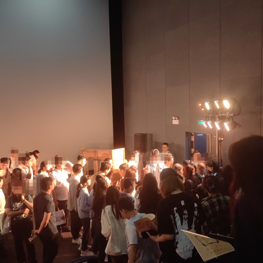 记者中途离开,在走廊上碰到退场的演员迎面走来,也许他们要绕过整个影院大厅才能去另一侧上场。