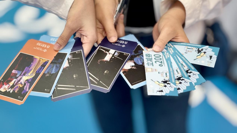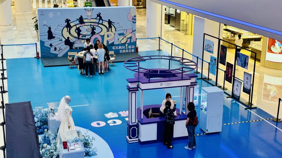 由上海中信泰富广场与美琪大戏院联合主办的“CARN! GO美琪开幕季”为期两周,以“艺术赋能城市”为主题,通过经典剧目展演、多元互动体验及文化惠民活动,进一步深化“艺术+商业”领域的战略合作。美琪大戏院升级归来后的开幕大戏《SIX》落幕后,中文音乐剧《白夜行》8月22日将在美琪大戏院上演,该剧由韩雪、刘令飞领衔主演,改编自东野圭吾同名小说。5月25日,购买《白夜行》演出票的观众,凭借纸质票在中信泰富广场兑换纪念票根,拿到票根的观众纷纷拍照打卡,上网分享。主题大头贴机前,人们排起长队,风动艺术装置更成为吸睛焦点,大家驻足体验,出片率超高。