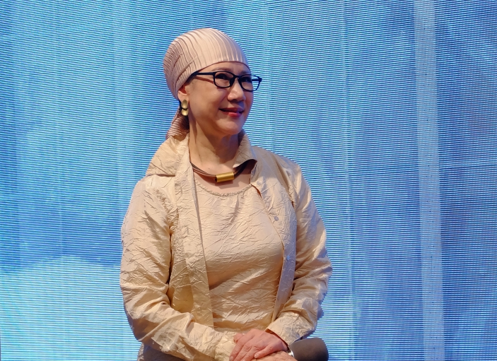 王小慧在开幕式上与郑人刚对话
