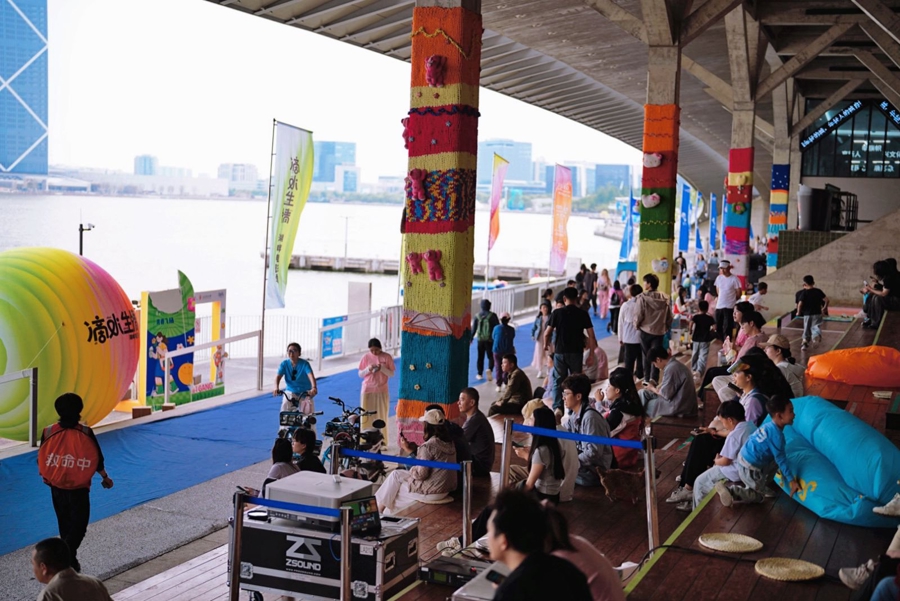 湖天为幕、青春作序,5月25日晚,滴水湖一号码头化身露天电影院,虚实光影在晚风中缠绵交错,创意配音工坊、吉他弹唱、“银盒子计划”市集等在湖畔聚起人气,每一帧画面都成为“年轻的城”的怦然心跳。