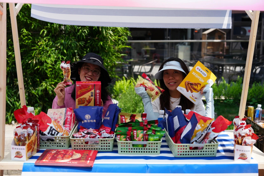 活动现场不仅有演出,紫燕、阿吉豆、曼可顿、牧澳等品牌设立的公益集市也吸引了不少人群驻足。这些摊位不仅展销特色商品,更将部分收益用于公益事业,实现文化惠民与公益助力的双赢。