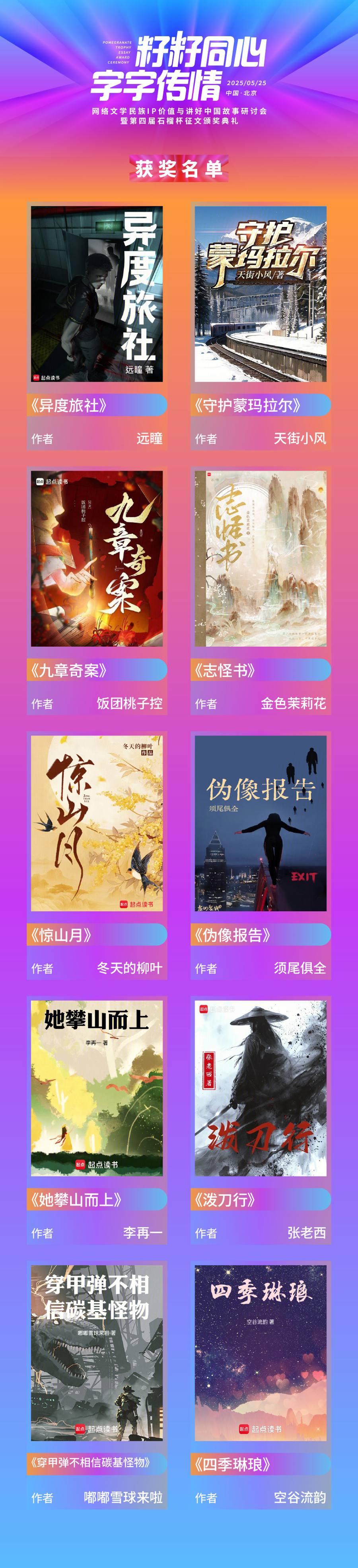 本届“石榴杯”获奖作品类型多样,涵盖科幻、现实、古言、仙侠、悬疑等多个题材,体现了网络文学作为新大众文艺范本,多维度展现中华文化的鲜活切面。