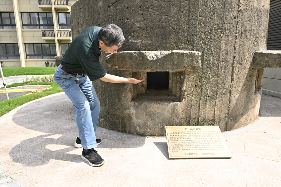 静安区彭一小区居民区书记李锋介绍,彭浦新村是上海最老的工人新村之一,彭一小区则是彭浦新村的第一批“居民”。解放上海战役前夕,国民党在宝山、大场、江湾一片区域建造了1500余座碉堡。随着上海的城市更新,遗留下的碉堡已经很少,彭一小区的这座却较为完好地保留了下来,见证了整个彭浦新村的发展史。