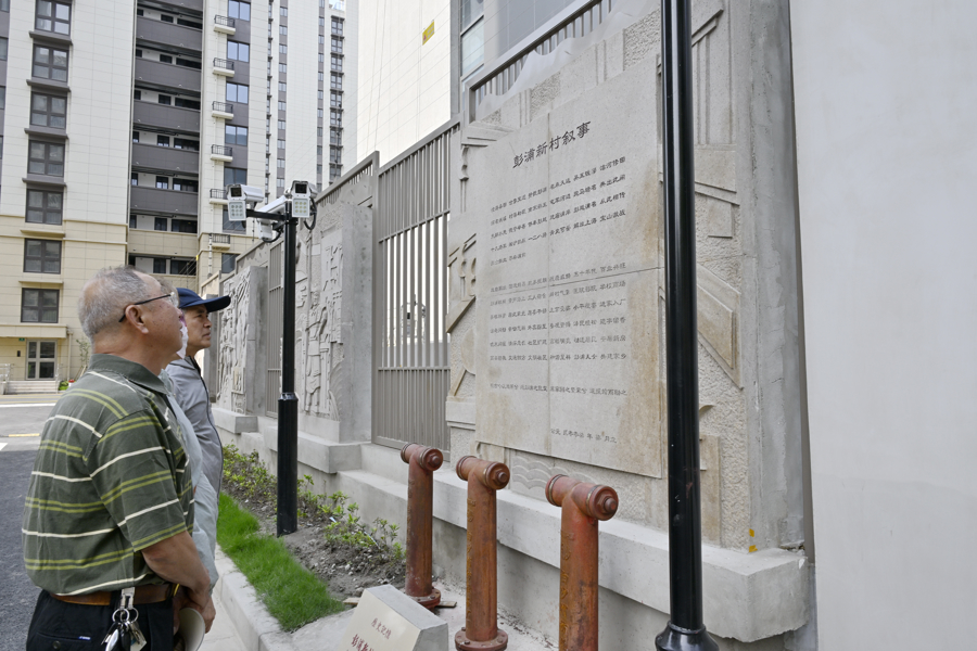 从“彭浦”地名的由来到一·二八淞沪抗战,再到解放上海战役打响、彭浦新村建村,彭浦新村街道退休干部丁立行站在小区入口处由8块浮雕组成的浮雕墙前,将彭浦新村的前世今生娓娓道来。