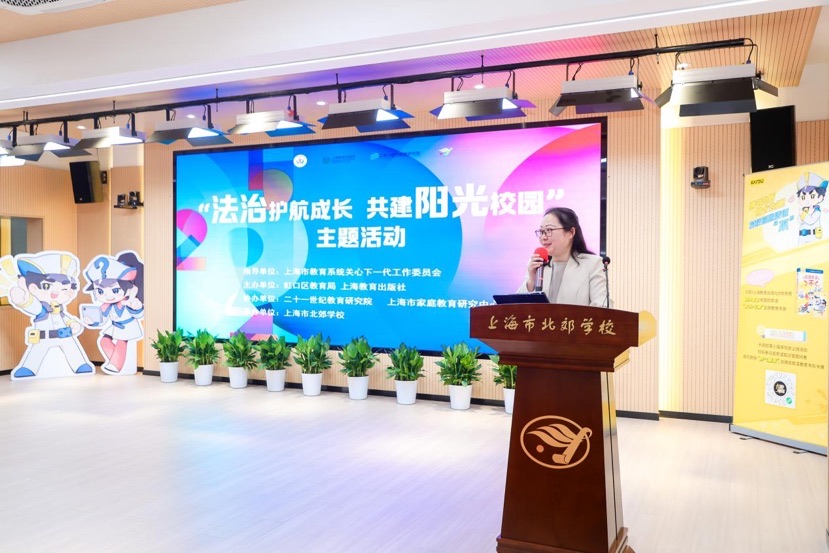 在全国五月法治宣传月期间,“法治护航成长 共建阳光校园”主题活动昨日在上海市北郊学校举办。本次活动由上海市教育系统关心下一代工作委员会指导,虹口区教育局、上海教育出版社联合主办,二十一世纪教育研究院、上海市家庭教育研究中心协办,上海市北郊学校承办。活动聚焦校园欺凌防治与青少年法治教育,通过专家微论坛、赠书仪式等形式,推动家庭、学校、社会协同发力,为青少年健康成长构筑法治防线。