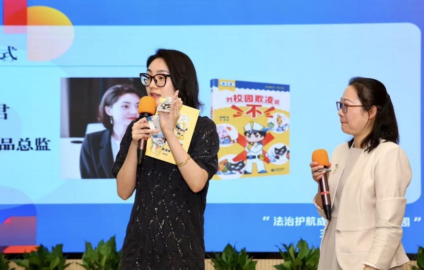 近年来,虹口区高度重视青少年法治教育,虹教系统举办了“以法‘治欺’”“法典相伴”等一系列学法系列活动。虹口区教育工作党委书记、局长孙磊全景式地介绍了虹口教育在青少年法治教育方面的典型经验、运作模式与一系列成果。通过构建三位一体的法治体系,加强校园安全,创新教育形式,虹口教育希望为未成年人提供更好的成长环境。 青少年法治教育需要“全员、全过程、全方位”的多元参与,更需要校家社企的多方合力。上海教育出版社配合学校教学和社会教育的需求,以“服务教育、启智育人”为宗旨,出版了多种教育类图书。上海教育出版社副社长庄晓明表示,融入漫画卡牌形式的教育读本《对校园欺凌说“不”》,用寓教于乐的方式拉近与学生的距离。他指出,法治教育需要与时俱进,创新形式。未来,上教社还将继续发挥出版资源优势,为学校提供更多可视化、互动化的法治教育资源,让法治意识在青少年心中生根发芽。