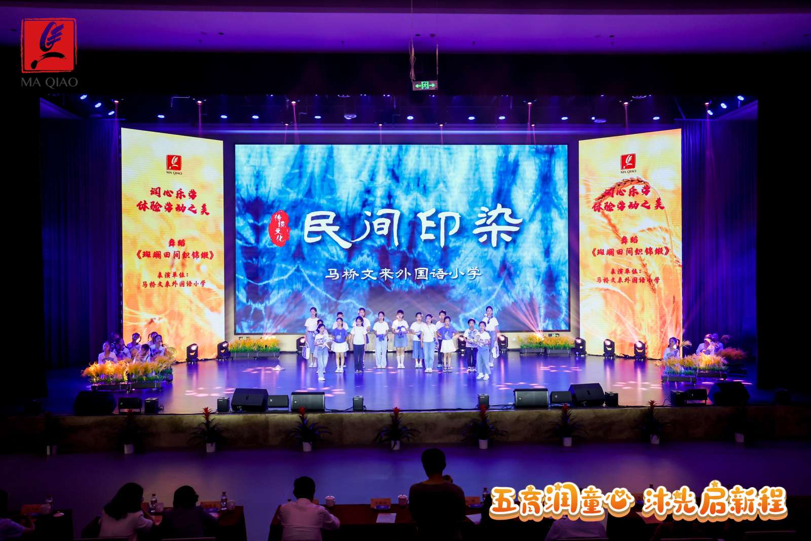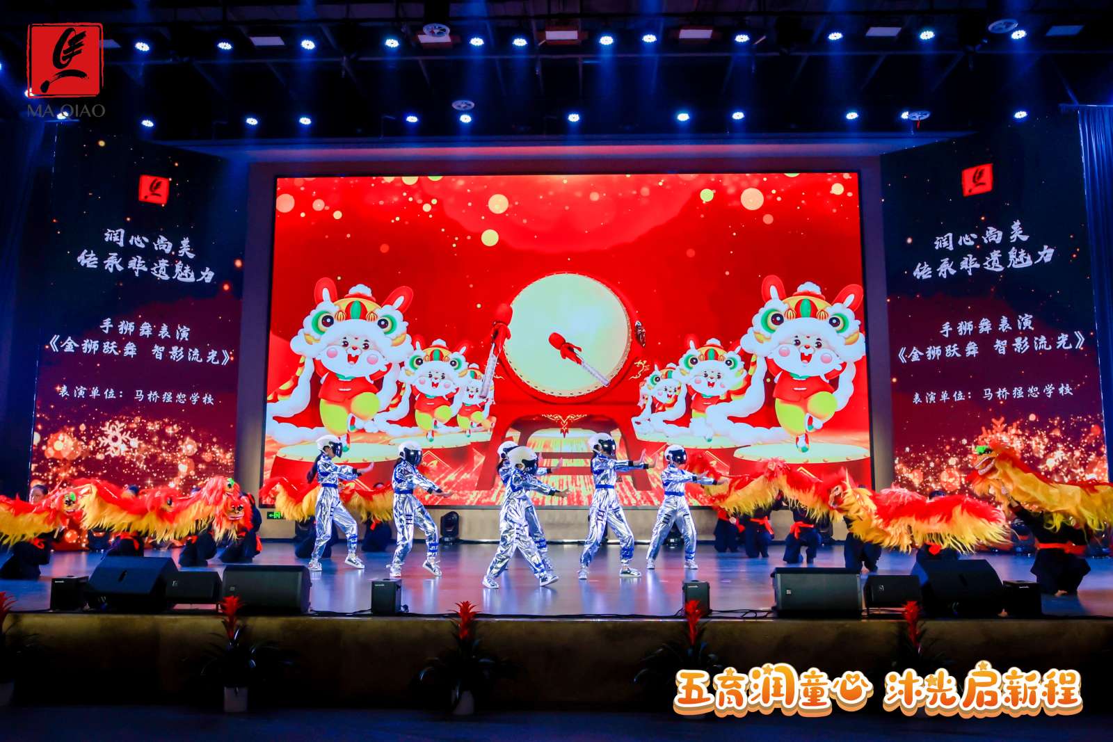 在文艺展演环节,来自全镇各学校的孩子们化身舞台精灵,带来一场精彩纷呈的视听盛宴。马桥强恕学校孩子们激昂的管乐合奏《歌唱祖国》,奏响爱国主旋律;马桥元祥幼儿园的情景剧《马小囡寻访记》,带领观众穿梭马桥古今,感受文化魅力;上海交通大学附属闵行实验学校的《AIGC跨次元互动秀》,展现科技赋能教育成果;活力运动秀《运动狂想曲》由上海交通大学附属闵行实验学校、上海交通大学附属闵行马桥实验学校和民办马桥小学三校联袂呈现,网球操、武术、啦啦操等多元体育元素巧妙融合,彰显体教结合成果;马桥强恕学校的孩子们带来手狮舞表演《金狮跃舞 智影流光》,国家级非遗手狮舞与现代街舞激情碰撞;马桥文来外国语小学的舞蹈《斑斓田间织锦缎》以扎染技艺和田间劳动为灵感,生动诠释“以劳育美”教育理念;马桥富杰幼儿园小朋友们带来的舞蹈《花开向未来》,绽放出对未来的美好憧憬。