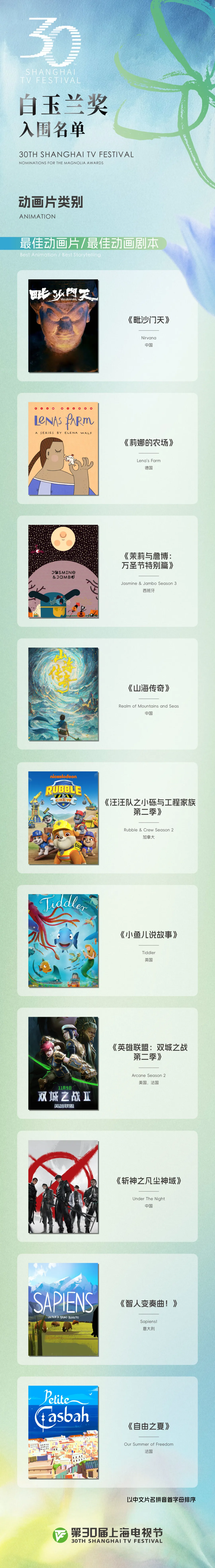 第30届上海电视节白玉兰奖入围名单(纪录片/动画片类别)公布