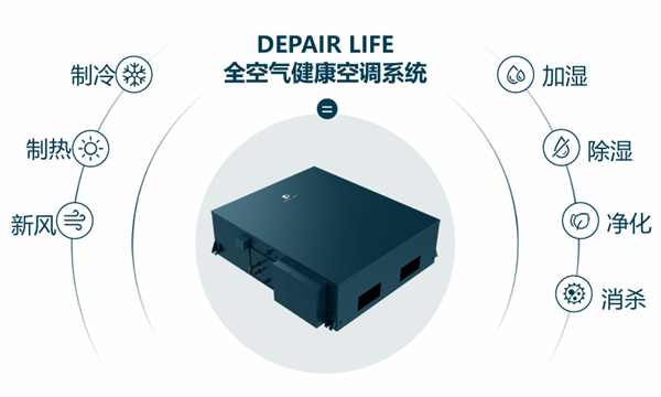 在技术落地层面,DEPAIR LIFE的全空气健康空调系统展现出对第四代建筑痛点的精准把控。 针对新装修房屋甲醛污染问题,其iPure空气净化技术,搭配每小时6-8次的空气循环以及双重除醛滤网可快速清除甲醛。对于过敏人群,多重过滤装置可有效过滤PM2.5、细菌、病毒等空气中的有害物质,让“空中庭院”真正成为无敏绿洲。