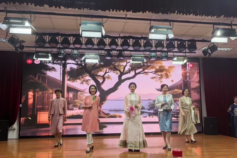 在这场以“服饰与我”为主题的共建活动中,9岁的小学生与82岁的老年大学学员同台,围绕“传承与创新”,共同演绎中华优秀服饰文化。 据介绍,上海市民终身学习服饰文化体验基地由东华大学退管办承办,依托学校学科与师资优势,整合学校老年大学、服装与艺术设计学院、上海纺织服饰博物馆等多方资源,创新服务形式,弘扬特色文化,提升市民对中华优秀服饰文化的认知与自信。