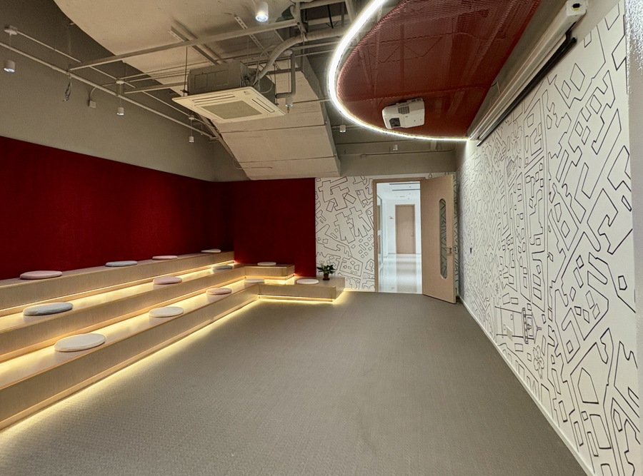 不只是来先生觉得“眼前一亮”,记者注意到,许多居民都为党群服务中心明亮活泼的风格所“惊艳”。从事务办理大厅、文体活动室、组织生活室,到助老服务区、儿童活动区、沉浸式学习区,室内空间主打“动静分离”,灵活度“拉满”,还有不少巧思。