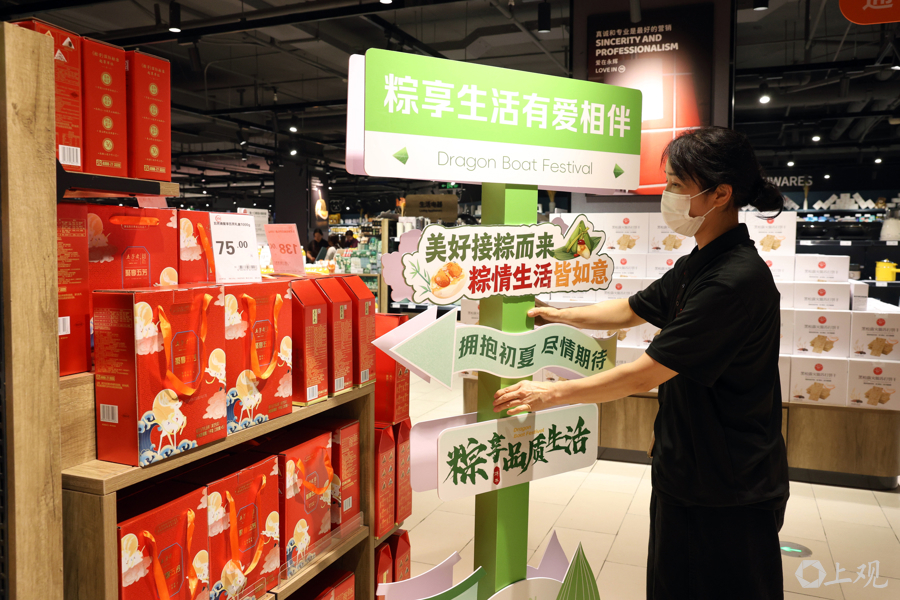 端午节将至,门店将南北风味的各类粽子展陈到“粽享生活有爱相伴”专区。