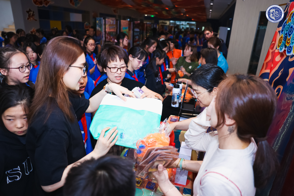 万源城协和双语学校此次在七年级共计221幅敦煌画作中,精选出16位学生的敦煌主题画作,在初中部“艺启成长家委社”与师生的共同努力下,通过PBL(project based learning)项目让学生在分析壁画技法、设计文创、解读文化内涵等实践中,同步提升审美力、创造力、协作力。在各方助力下,孩子们的创意从纸面落地为九大品类文创,包括包袋、毛绒挂件、多功能保温杯、环保徽章、集章本、冰箱贴、饼干等。
