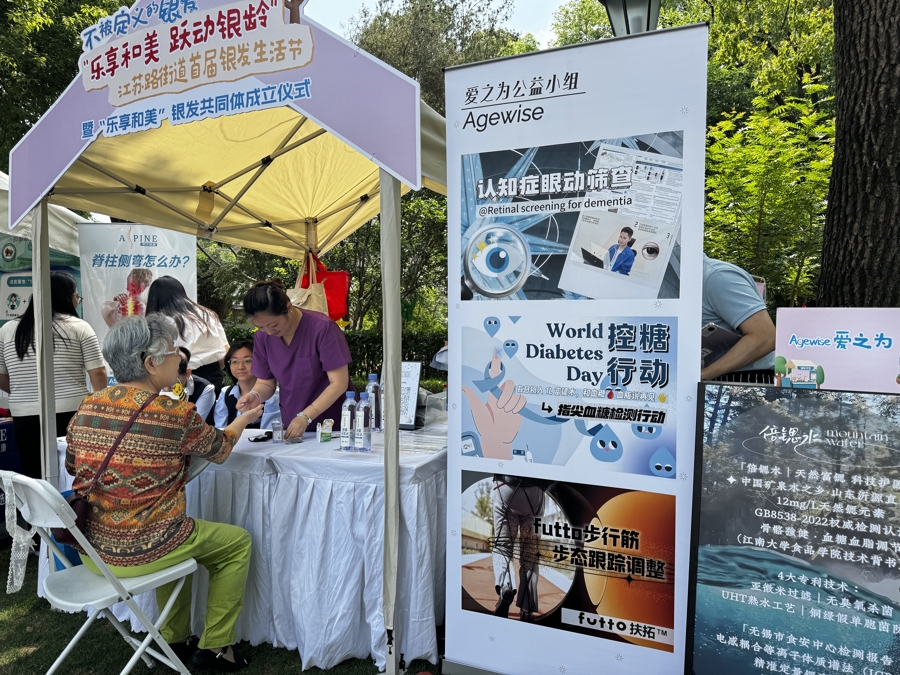 仪式后启动的“银发市集”成为一大亮点,创新打造了适老化社区商业新场景,进一步丰富了社区为老服务生态。市集围绕健康管理、便利生活、辅助器具、金融惠老、健康膳食、银发旅游等7大类主题,提供了28项咨询、体验与服务,让老年群体直观感受银发服务的“质”与“量”。